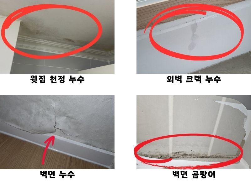 외벽에 많은 문제로 외부 방수가 오래됐거나 코너 쪽 부식으로 방수 층을 상실한 경우