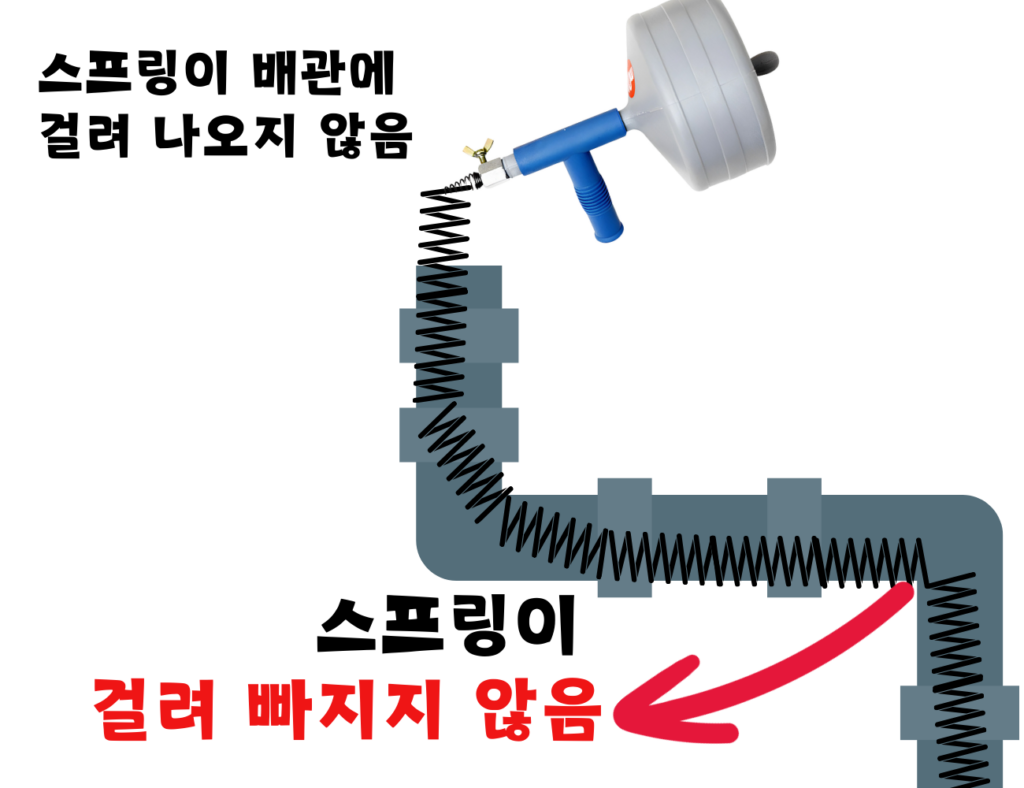 스프링이 걸렸을 때 빼기가 어렵습니다. 오히려 막힌 곳을 뚫어 보려다 스프링까지 걸리는 상황도 생기고